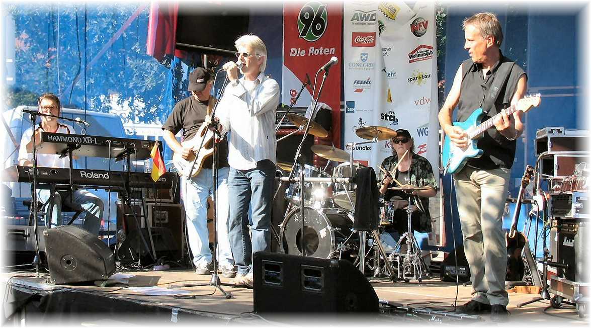 In dieser Band hatten sich 5 „alte Haudegen“ der Rock-, Blues-, und Countrymusik der Region Hannover zusammengetan, um gemeinsam die Stücke zu spielen, die man immer schon mal interpretieren wollte, zu denen man aber aufgrund der jeweiligen Stilrichtung der bisherigen Gruppen nicht kam. Aufgrund der verschiedenen stilistischen Schwerpunkte der einzelnen Musiker bestand das Programm aus einem breiten Spektrum „querbeat“ durch die Rockmusik der vergangenen Jahrzehnte. So wurden Stücke von CREAM, JAMES TAYLOR, GLENN HUGHES, ROBBEN FORD, BEATLES ... nicht nur einfach gecovert, sondern jeweils individuell interpretiert. Die folgenden Bilder stammen aus dem vorhergehenden LineUp mit Fergus Holmes - voc |