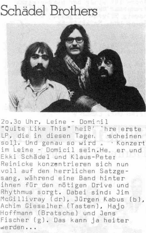 Musikern (Klaus-Peter Reinicke, Ecki Schädel, Heiner Schädel). Alle weiteren
